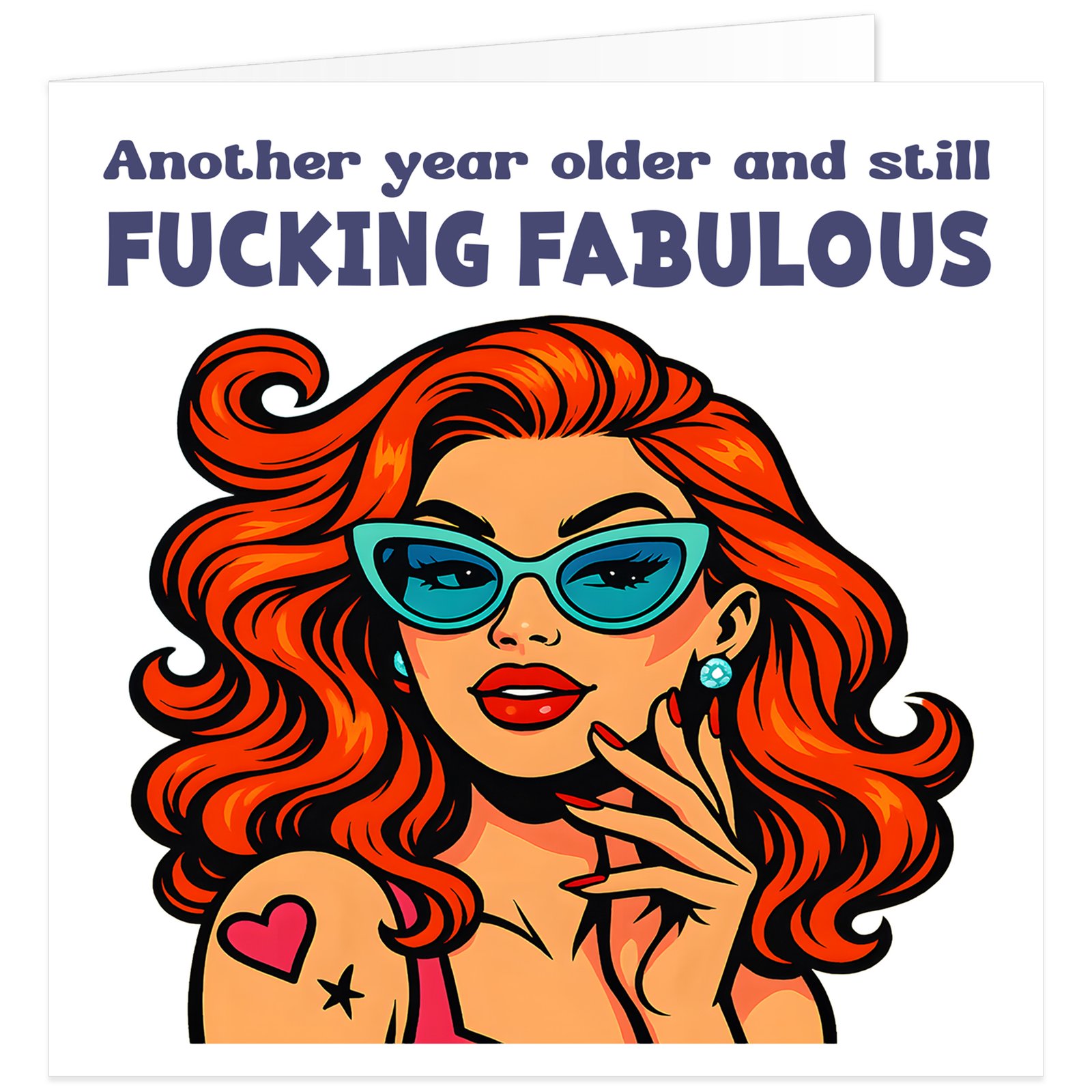 Rude Birthday Card for Women, Adult Humour Card, Another Year Older and Still Fucking Fabulous