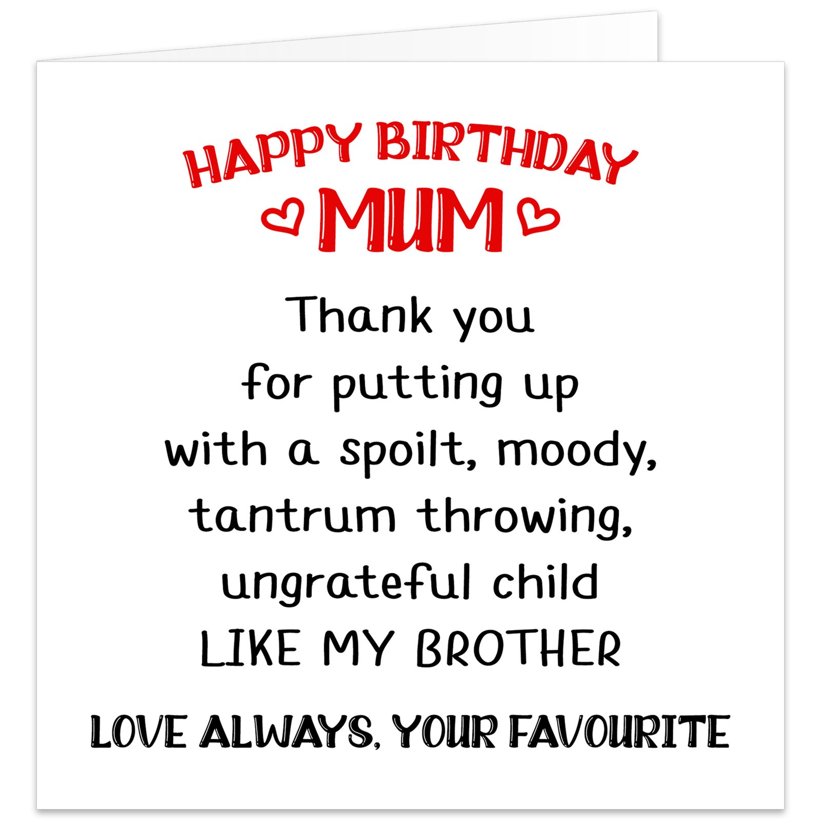This square greeting card is a great way to celebrate your mum, step mum, or any mother figure who loves a bit of banter.