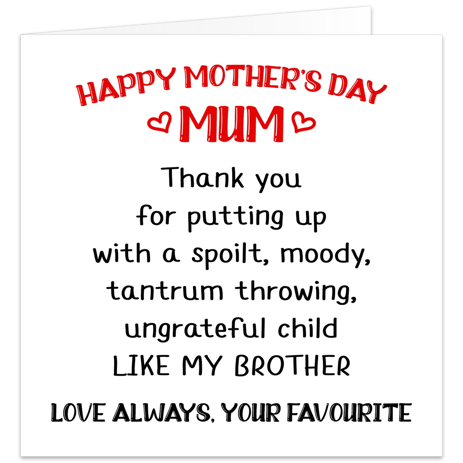 Funny Mother’s Day Card for Mum – From Son or Daughter About Brother