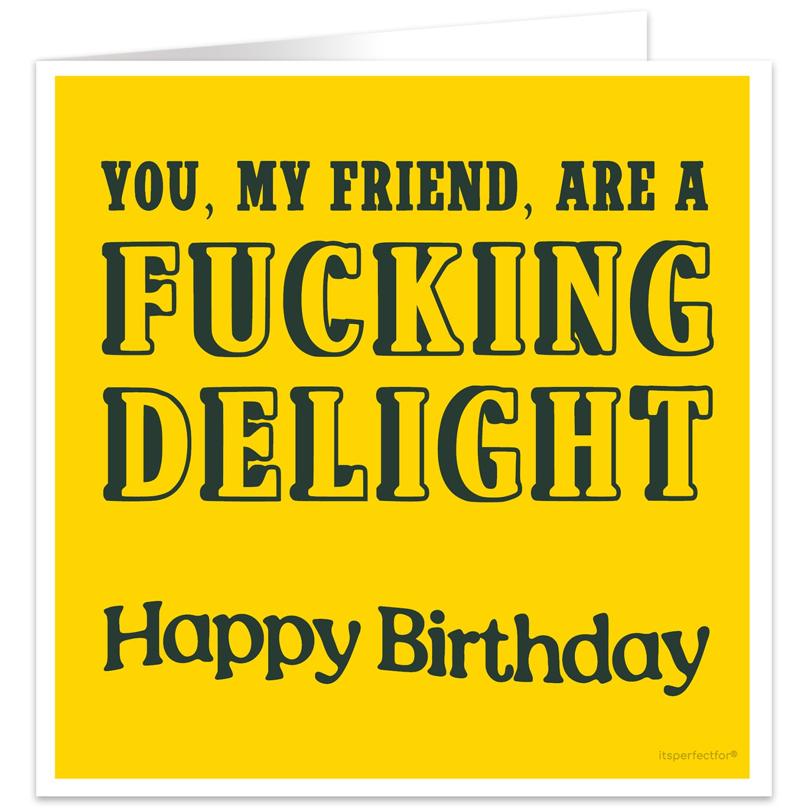 • Card text reads: You my Friend are a Fucking Delight – Happy Birthday.